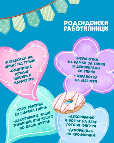 - КРЕАТИВНИ РАБОТИЛНИЦИ за активности кои ги поттикнуваат : вештините, мечтите и можностите за дружење меѓу децата.